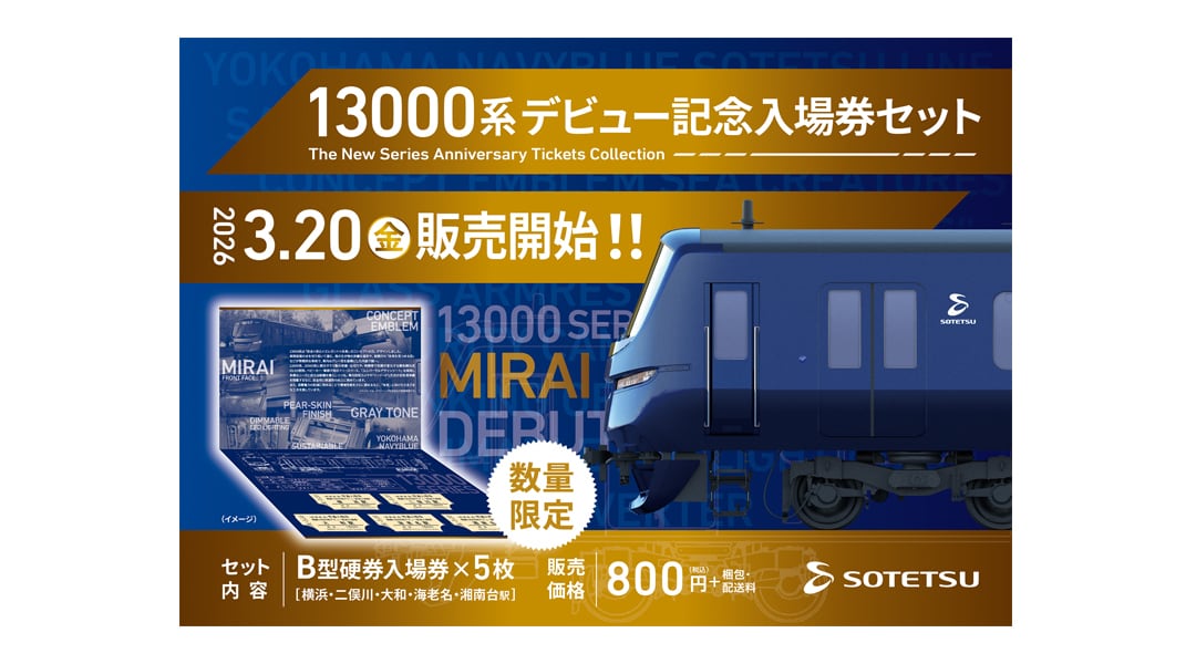 相鉄・東急新横浜線が開業3周年を迎えることを記念し、相鉄と東急の入場券がセットになった記念入場券セットを発売いたします。「相鉄・東急新横浜線開業3周年記念入場券」は、駅での発売を含めて合計2,000セット製作し、そのうち300セットを通信販売いたします。