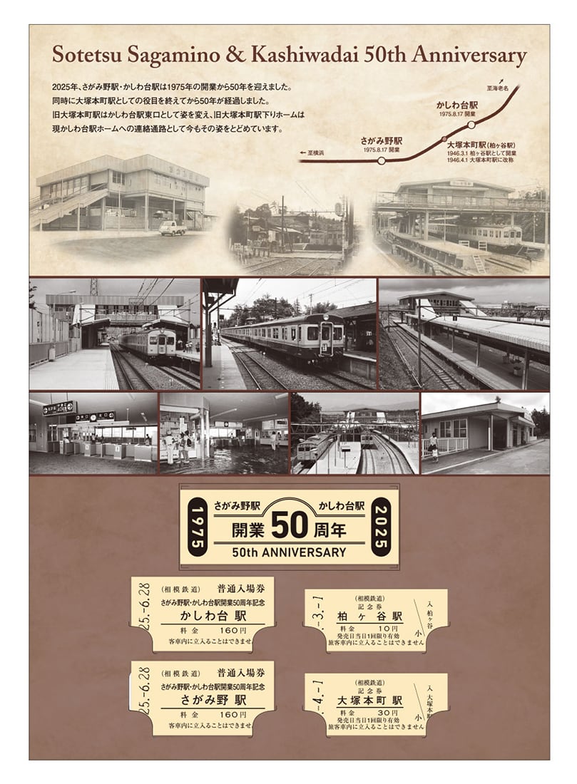 さがみ野駅・かしわ台駅 開業50周年を記念し、2025年6月28日相模鉄道車両センターで発売した記念入場券セット。多くのお客様から再販のご要望をいただきついにオンラインで再発売!