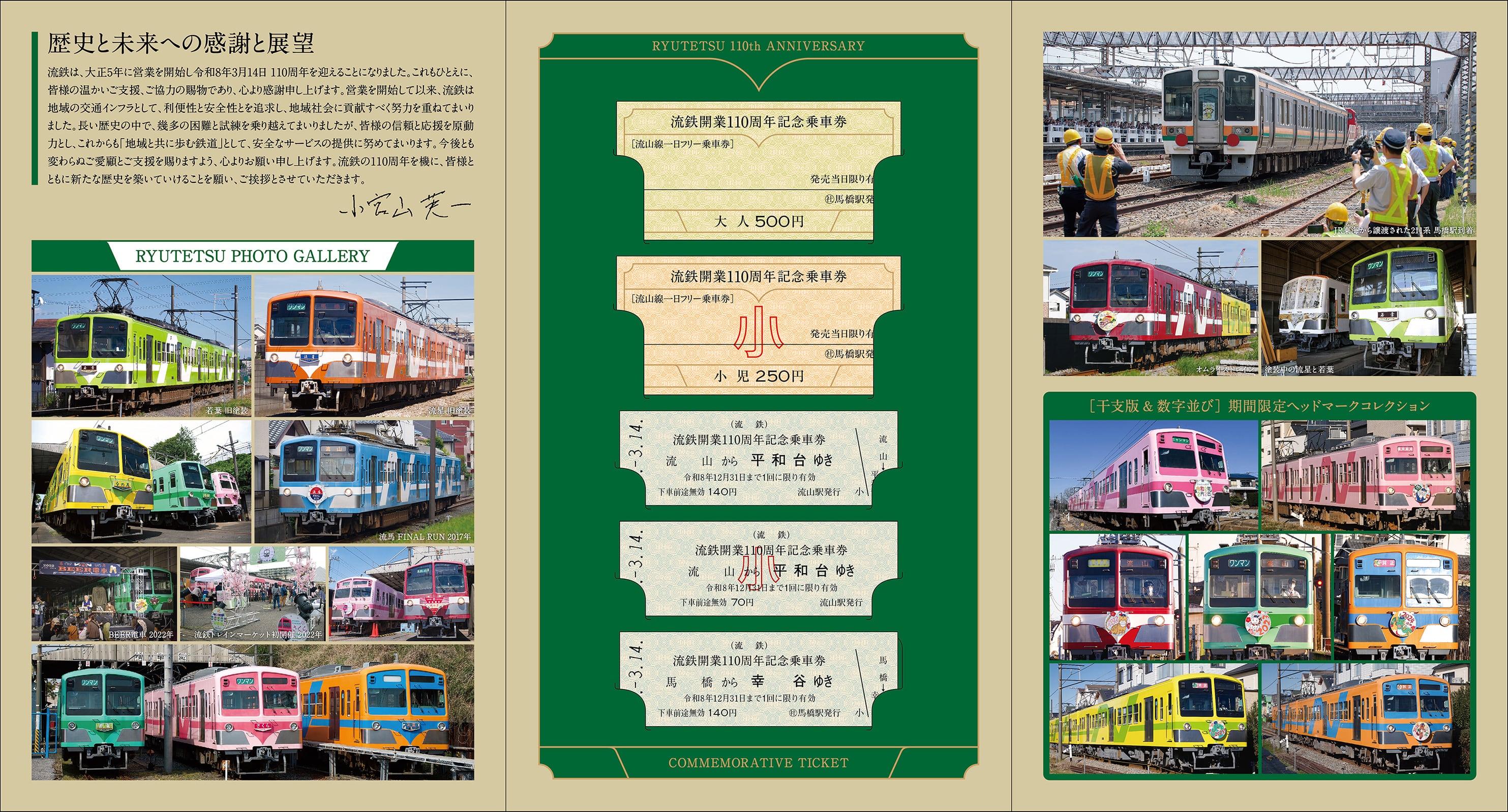 2026年3月14日 開業110周年を迎える流鉄の記念乗車券です。