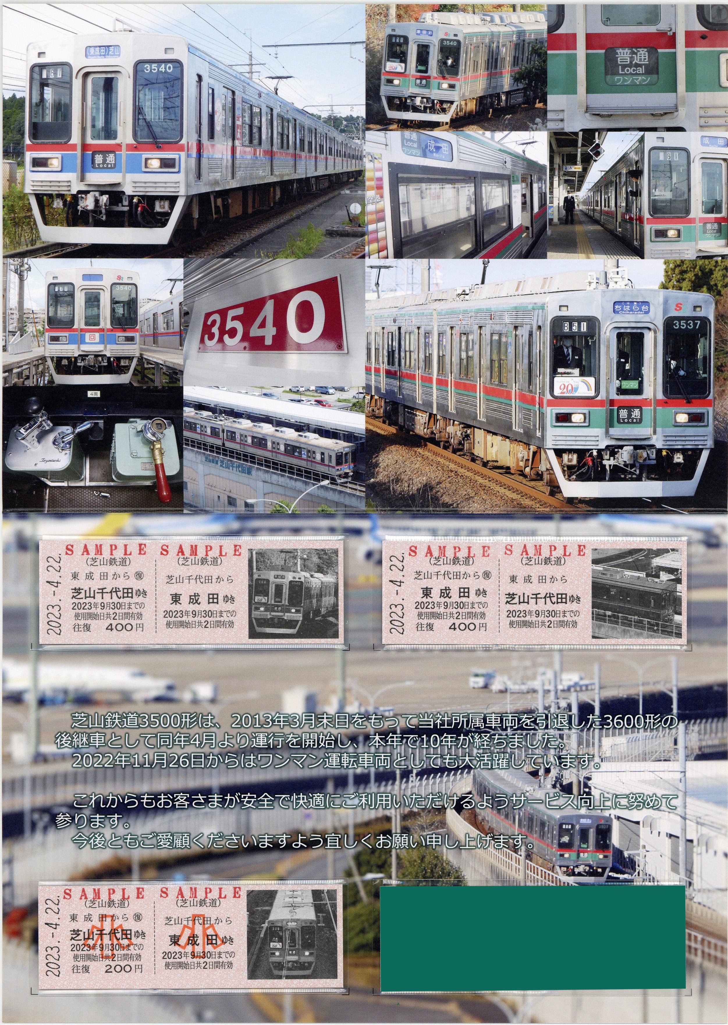 [芝山鉄道]芝鉄3500形運用開始10周年記念乗車券~ワンマン運転実施記念~